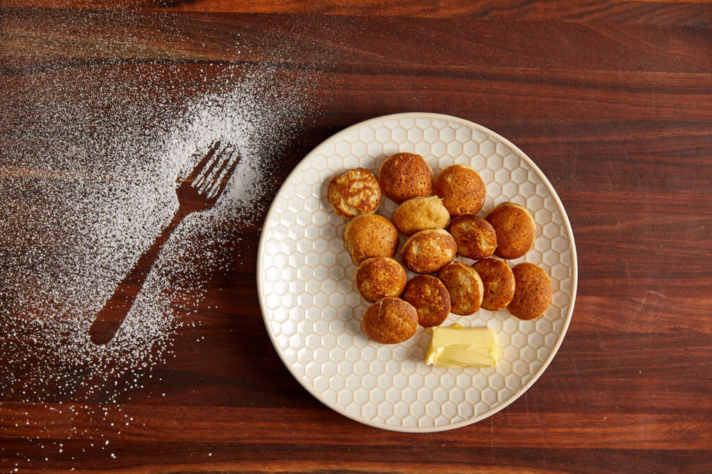These bite-sized, pillowy Dutch pancakes are perfect snack food. They’re easy, and fun to make with the family. Enjoy them simply with some powdered sugar and butter, or with Nutella or strawberry jam!