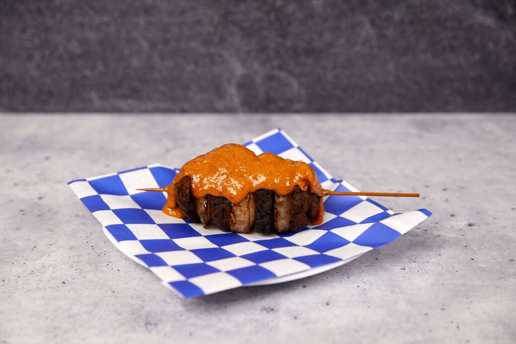 Growing up, I’d visit my favorite snack bar more than I’m willing to admit. And while a Frikandel Speciaal was probably the meat dish I ordered most, the berenklauw was probably a close second. Let’s face it: what’s not to like … a delicious sliced meatball and put on a skewer with rings of onion, that is deep-fried and then served with a generous helping of peanut sauce.