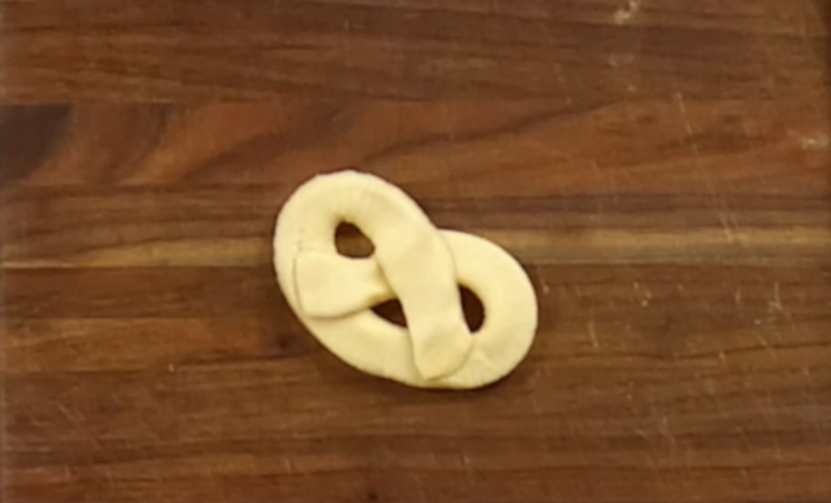 Place a finger on each side of the loop. This is to make sure that the krakeling has its characteristic shape, and there is even spacing all around.