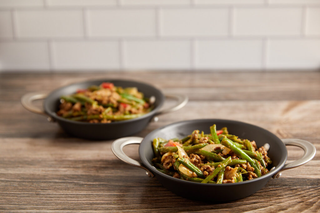 While my recipe is made with green beans, onions, and peppers, you can make a ton of variations with different vegetables. Instead of ground beef, you could use mushrooms, tofu, or something like impossible or Beyond meat substitutes.
